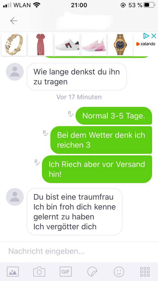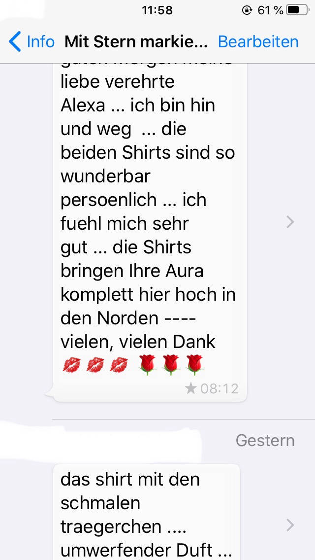 Zudem achte ich stark auf die Qualität meiner Ware und nehme Rücksicht auf die Wünsche von dir, um sie eben so gut wie möglich umzusetzen.